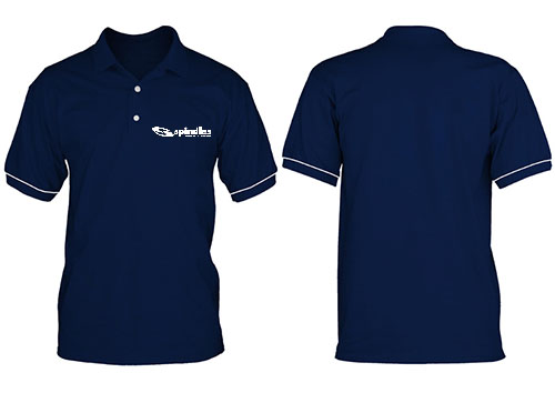 Placket poloshirt with 3 white buttons and twin needle stitching, set in sleeves with contrast white piping.